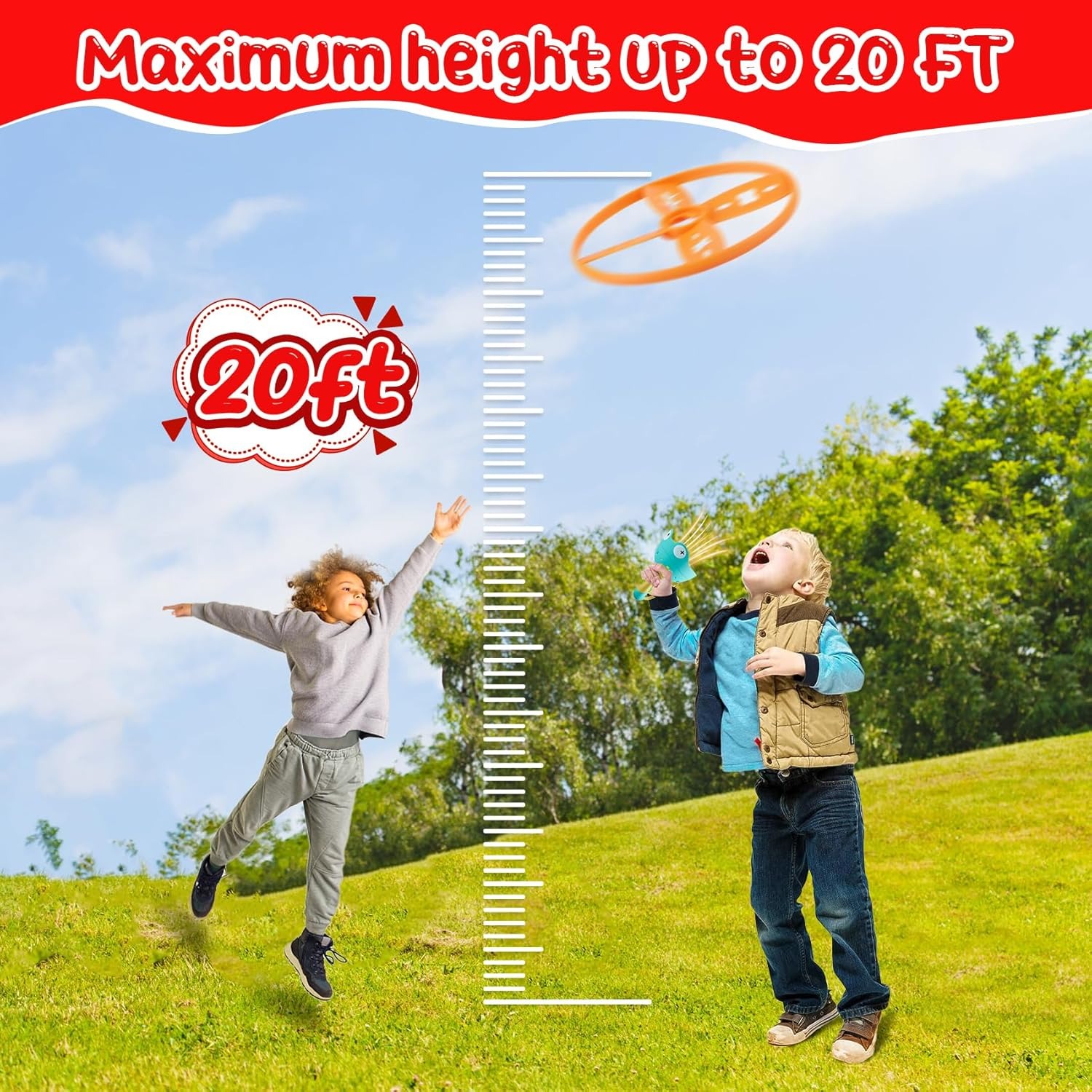 【Exciting Indoor and Outdoor Activity Games】Our outdoor toddler toys offer thrilling horsepower and can carry 1-4 flying discs. The difficulty level can be adjusted based on the number of discs installed, making it both fun and challenging. The discs launch at different heights ranging from 9.8 ft to 40 ft. Whether you’re at the park, in the yard, or camping outside, this flying toy guarantees an enjoyable playtime for your child.