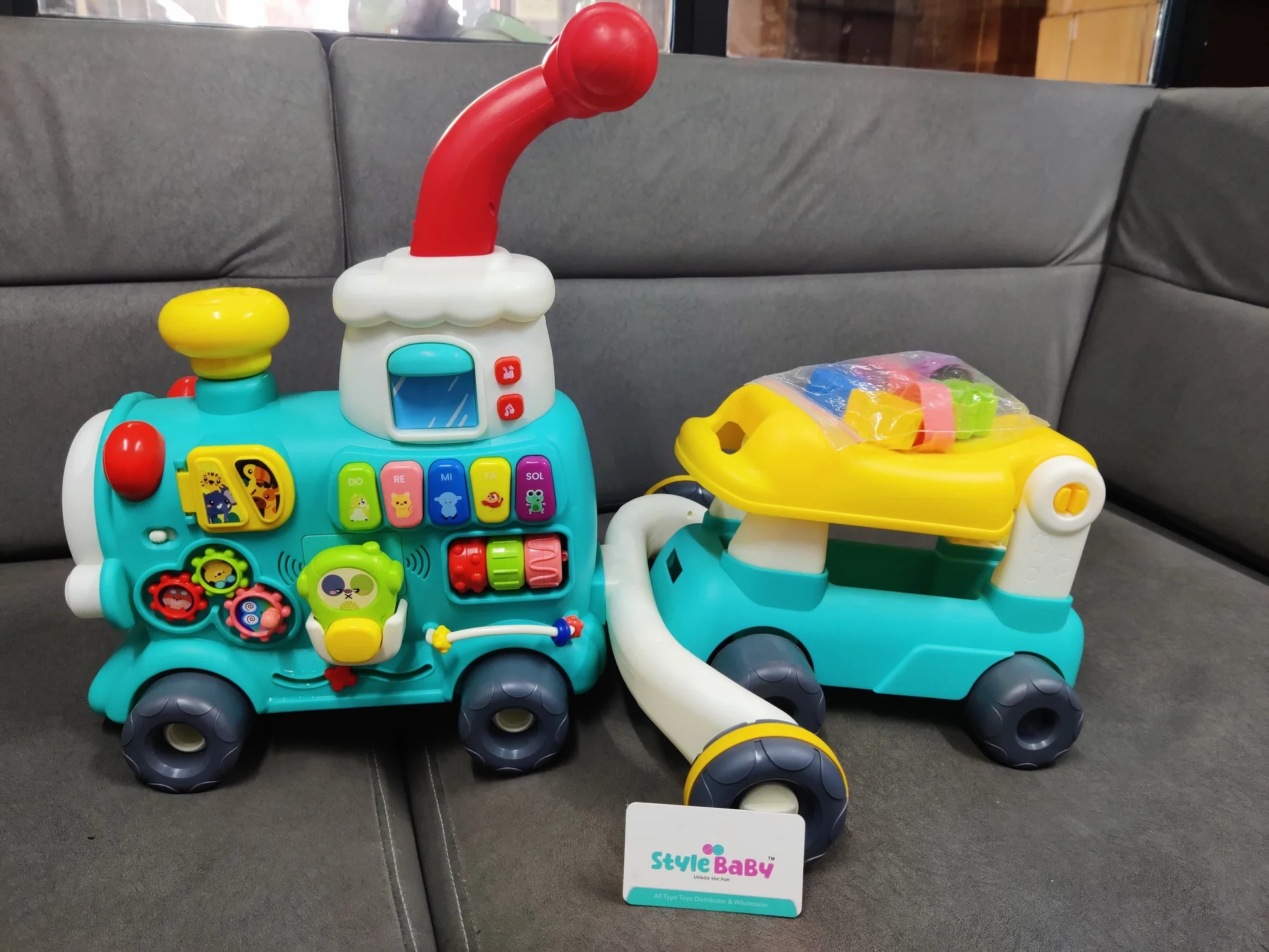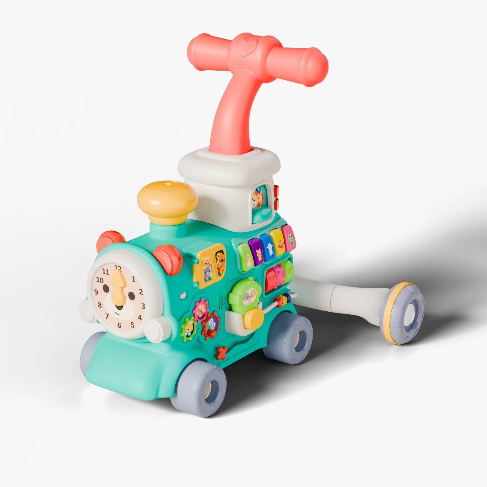 The 5-in-1 Musical Baby Walker Ride-On Train is designed to help babies learn walking while having fun.