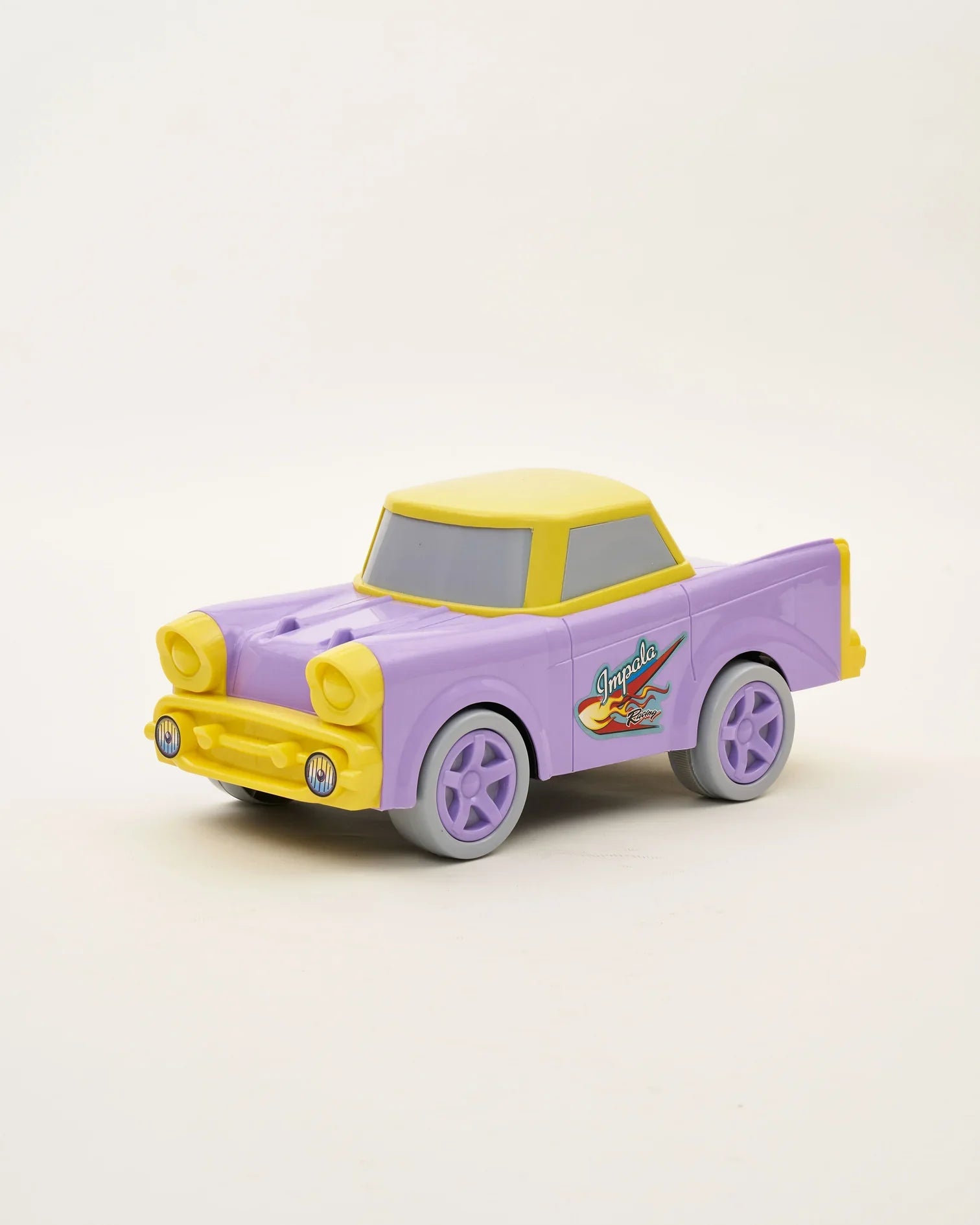 • Stylish Design: The IMPALA Car features a classic design with a modern twist, available in purple and yellow or pink and blue color options.