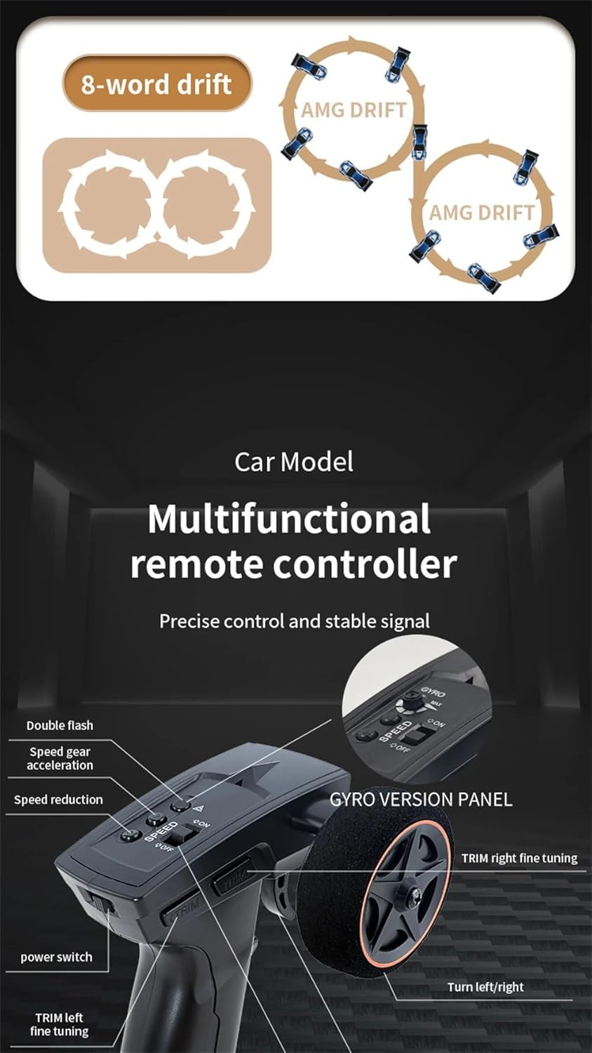 Experience the thrill of professional-grade racing with this impressive 1:43 scale RC drift car. Featuring a robust 4WD system with front suspension spring roll reduces and built-in bearing for enhanced performance, this mini racing marvel reaches speeds up to 15 km/h. The powerful hollow cup motor running at 3.7V/51000 rpm delivers exceptional acceleration, while the steering gear’s 2g three-wire system ensures precise directional control. The 2.4GHz remote control provides responsive handling for both racing and drifting manoeuvres. With a generous 30-minute driving time, you can enjoy extended racing sessions. The model features striking LED lights and a detailed body design that captures the essence of high-performance motorsport. The sophisticated GYRO system helps maintain stability during intense drifting sequences. Whether you’re an RC enthusiast or just starting your journey into the world of remote-controlled vehicles, this mini drift car offers an exciting blend of speed, control, and style. Perfect for indoor racing and drifting experiences, it’s a compact powerhouse that delivers big thrills.