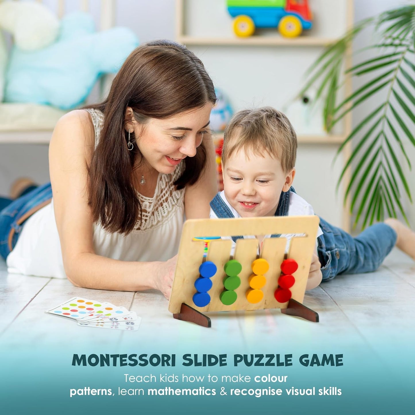 - Shape Sorting Toys – Montessori Slide Puzzles and Four color game shapes sorter block for kids. This kid toy puzzle set has 12 color plastic slide puzzle block