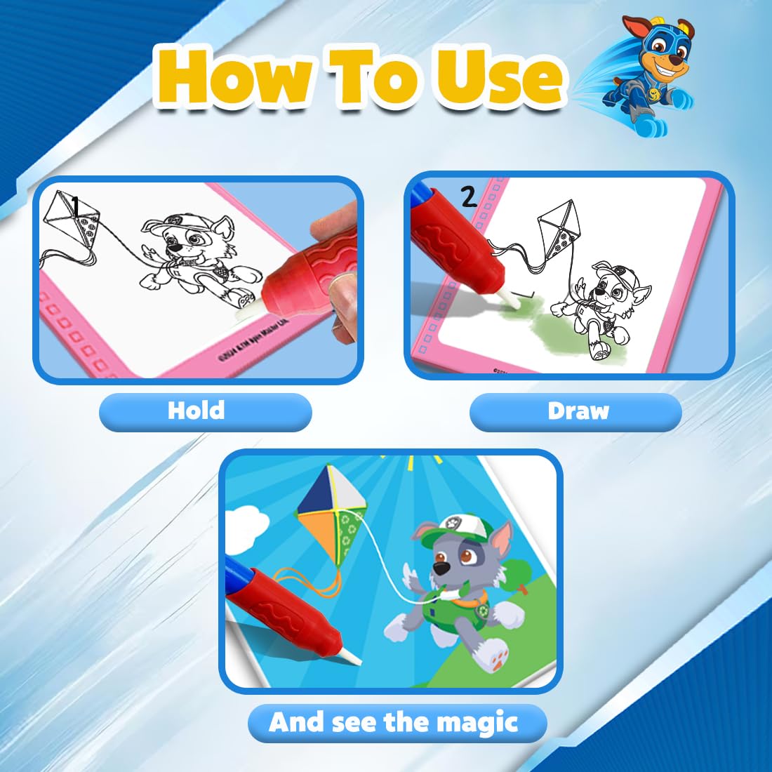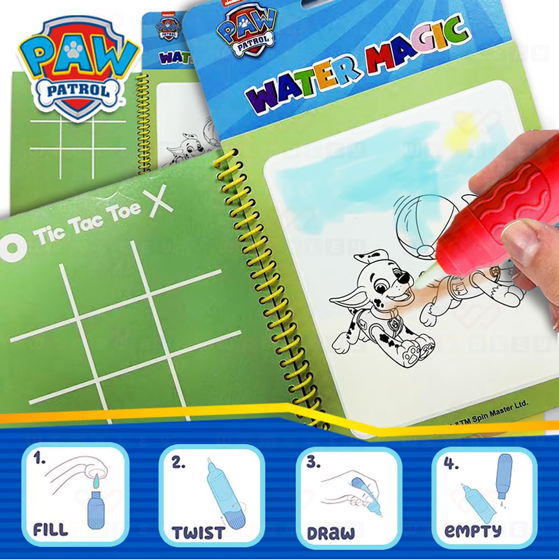 • REUSABLE WATER MAGIC BOARDS: This magic book contains 4 reusable water magic boards where kids can color, let it dry, and reuse it again. The mess-free coloring experience allows children to enjoy endless fun with the water-based activity, helping them develop motor skills while staying entertained with their favorite Paw Patrol characters.
