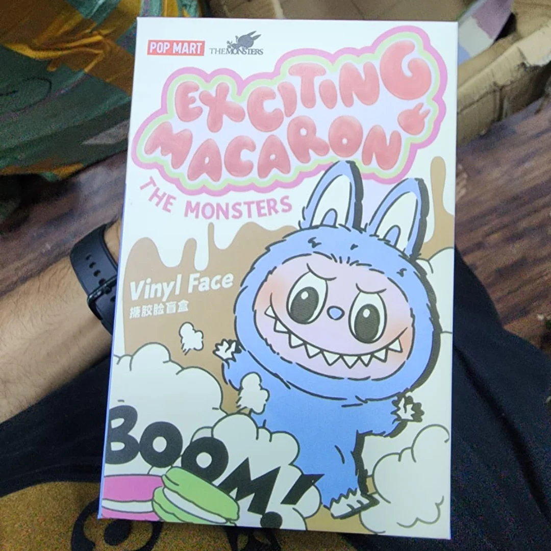 POP MART THE MONSTERS: Tasty Macaron Vinyl Face Blind Box: Each blind box contains a surprise figure from the series. Every box is a mystery; no one knows what character is within. This set comprises six figurines, one of which is a rare secret edition that is concealed randomly.