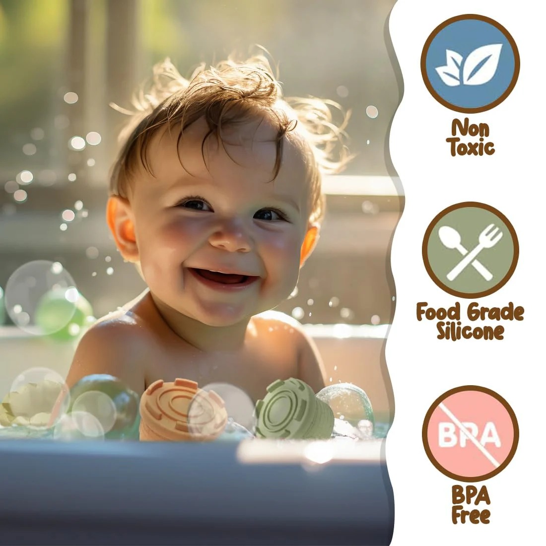 - Montessori Learning Toys – Each stacking piece has unique textures and features different shapes and patterns, encouraging early learning. Helps develop fine motor skills, cognitive abilities, and shape recognition while doubling as a fun bath toy.