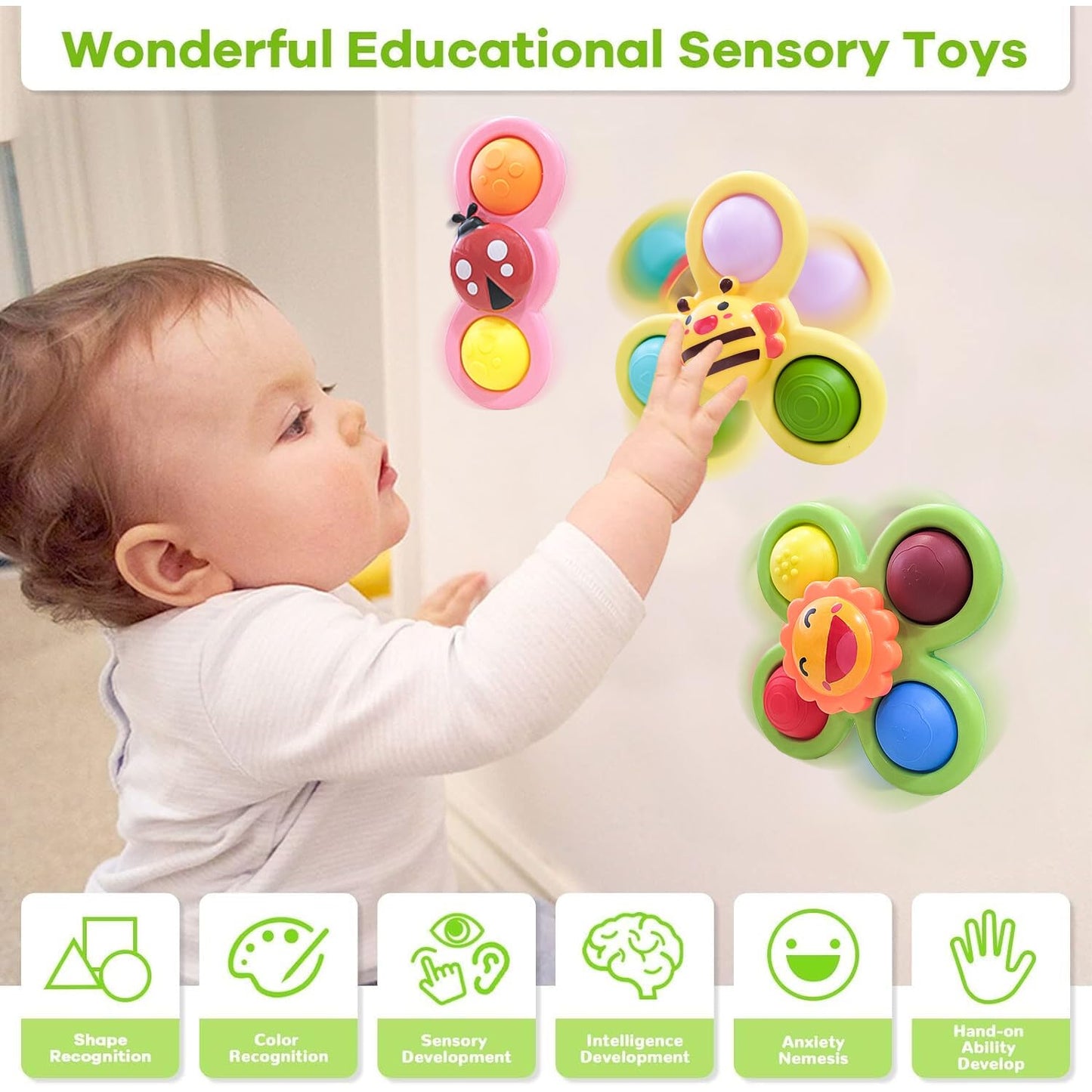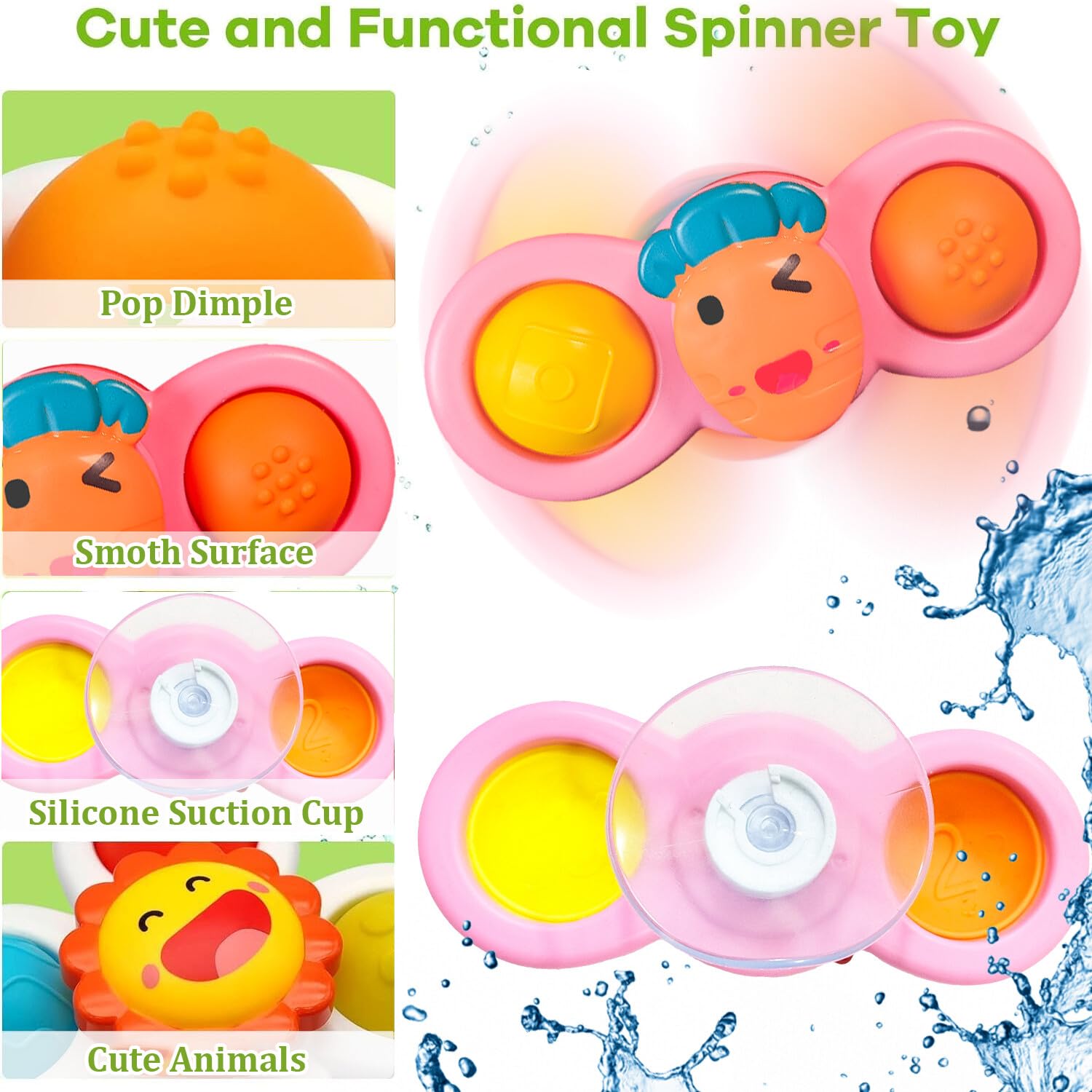 - 【Suction Cup Spinning Top Toy】 The baby spinning top toy designed with cartoon insect image. A variety of bright colors, cute animal shapes, and rotating wind blades can attract children’s attention, arouse children’s interest in games, and reduce children’s emotional pressure. At the same time, it can increase the fun and exercise of the brain to help children grow.